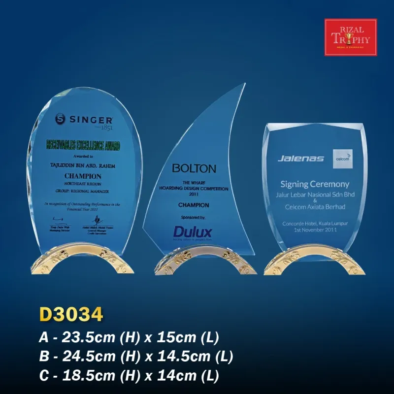 Pilihan trophy & plaque awards premium dan eksklusif yang sesuai untuk majlis penghargaan, pengiktirafan korporat dan penyampaian rasmi.